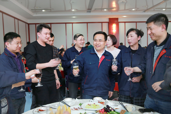 孫壽寬董事長(zhǎng)與現(xiàn)場(chǎng)全體員工共同舉杯祝愿嘉晨明天更美好