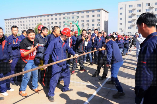 比賽場(chǎng)地設(shè)在辦公樓門前停車場(chǎng)。由各車間為單位,組成的12支代表隊(duì)參加了比賽,其中男隊(duì)8支女隊(duì)4支。比賽采用三局二勝制淘汰賽,每隊(duì)參賽人員 10人,按抽簽分組決定比賽順序。參賽隊(duì)員們個(gè)個(gè)摩拳擦掌、士氣高昂,隨著裁判員一聲哨響,比賽正式開始。隊(duì)與隊(duì)之間是一場(chǎng)力量和技術(shù)的較量,上場(chǎng)的兩支參賽隊(duì)伍緊握拔河繩,心往一處想,勁往一處使,拼勁全力,展開了實(shí)力拉鋸戰(zhàn)。賽場(chǎng)下,啦啦隊(duì)員們?yōu)樽约褐С值年?duì)伍加油鼓勁,助威聲一浪高過(guò)一浪。隊(duì)員們?cè)谫悎?chǎng)上的精彩表現(xiàn)搏得了現(xiàn)場(chǎng)觀眾的陣陣歡呼,號(hào)子聲、吶喊聲,此起彼伏,高潮迭起,氣氛熱烈。